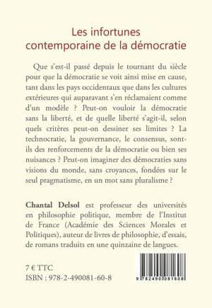 Que s'est-il passé depuis le tournant du siècle pour que la démocratie se voit ainsi mise en cause, tant dans les pays occidentaux que dans les cultures extérieures qui auparavant s'en réclamaient comme d'un modèle ? Peut-on vouloir la démocratie sans la liberté, et de quelle liberté s'agit-il, selon quels critères peut-on dessiner ses limites ? La technocratie, la gouvernance, le consensus, sont-ils des renforcements de la démocratie ou bien ses nuisances ? Peut-on imaginer des démocraties sans visions du monde, sans croyances, fondées sur le seul pragmatisme, en un mot sans pluralisme ? L'auteur dans cet ouvrage fait part d'une réflexion sur les fondements de la démocratie et permettre à chacun de comprendre pourquoi elle est remise en cause aujourd'hui.