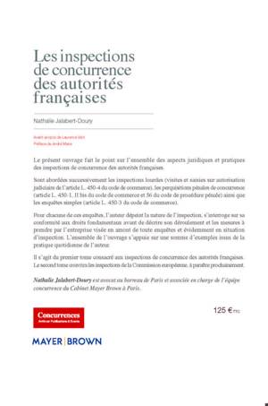Il s'agit du premier tome consacré aux inspections de concurrence des autorités françaises.