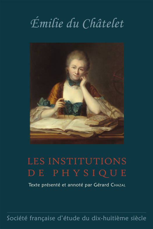 Émilie De Breteuil, marquise du Châtelet, fut au cœur du XVIII e siècle une femme savante, une femme des Lumières. Maîtresse de Voltaire elle l’accueillit dans son château de Cirey et y installa un laboratoire pour y mener des expériences de physique. En contact avec tous les savants de son époque (Maupertuis, Clairaut, Bernoulli…) auprès de qui elle chercha constamment à s’instruire, elle sera la traductrice en français des Principia de Newton, et l’auteur de deux ouvrages de physique : Dissertation sur la nature et la propagation du feu (1744) et les Institutions de Physique (1740) présentées ici.