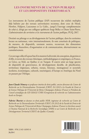 Les instruments de l'action publique (IAP) recouvrent des réalités multiples déjà balisées par des travaux universitaires reconnus. Destinés au pilotage et au développement de l'action publique, ils sont constitués de politiques, de mesures et de dispositifs recouvrant des dimensions juridiques, financières, d'organisation et de communication. Cet ouvrage a pour but d'en montrer la diversité de conception, de gestion et d'effet, à travers des travaux théoriques, méthodologiques et empiriques dans plusieurs pays. Il couvre ainsi un large spectre de dispositifs de gouvernance, de développement durable, et de planification d'Europe en Amérique du Nord en passant par l'Afrique.