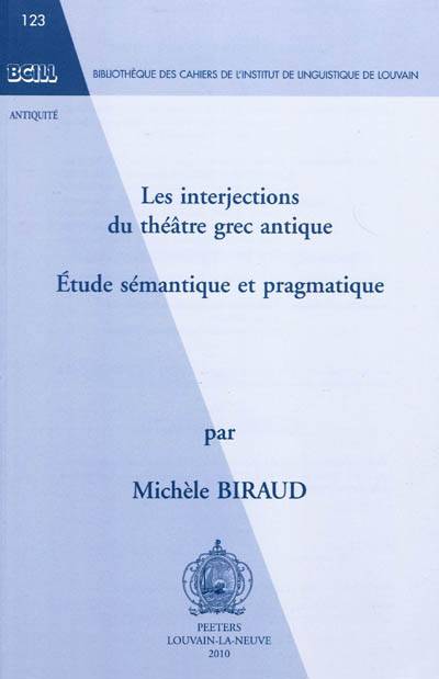 Cet ouvrage propose un examen systematique de l'ensemble des interjections grecques attestees dans les tragedies et les comedies de l'epoque classique. L'analyse minutieuse se fonde sur une methode innovante integrant les acquis de la philologie a ceux de la linguistique pragmatique (notamment les criteres de situation typique d'enonciation et d'association preferentielle entre actes de langage, la repartition en cinq domaines d'actes illocutoires, les usages parodiques ou ironiques - frequents dans l'enonciation comique - qui peuvent aller jusqu'a l'inversion du semantisme). Cette etude a permis de parvenir a des conclusions neuves, a la fois pour l'etablissement des proprietes de la classe et sur le sens precis de chaque interjection. Pour certaines d'entre elles, l'heterogeneite de leurs emplois incite a distinguer, derriere une facade graphique unique, plusieurs interjections dont la prononciation devait differer par la courbe melodique, la duree ou la tension d'emission de leurs phonemes. La structuration phonique des interjections s'avere ainsi etre un domaine a part de la phonologie de la langue. D'autre part, l'etude montre qu'il existe des interjections pour chacun des cinq domaines d'actes illocutoires: beaucoup sont de valeur expressive ou directive, mais quelques-unes sont declaratives, promissives ou assertives. Tout ceci conduit a une definition precise de la classe des interjections, definition dont les principes depassent la langue grecque, et a un questionnement sur les limites d'une classe de mots ouverte a plus d'un titre. Cette description des interjections du grecque classique, qui permet de definir la signification et la tonalite des interventions des personnages de theatre, interessera les specialistes de la tragedie et de la comedie grecques, mais aussi les lecteurs des dialogues de Platon ou de Lucien. Cet ouvrage sera egalement utile pour les chercheurs en linguistique generale, meme non hellenistes, l'auteur s'etant efforcee de leur rendre son propos accessible en traduisant systematiquement les enonces etudies et en translitterant les mots et notions linguistiques du grec.