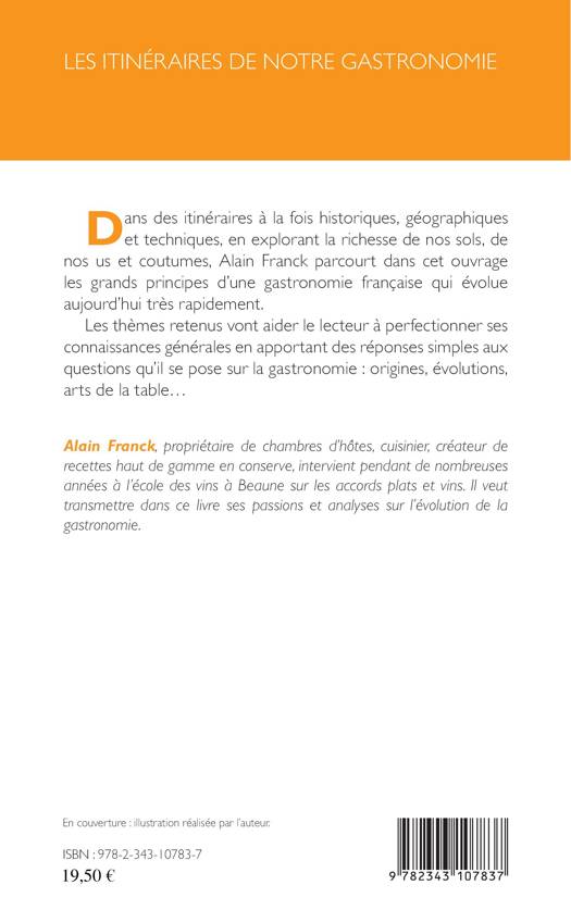 Dans des itinéraires à la fois historiques, géographiques et techniques, en explorant la richesse de nos sols, de nos us et coutumes, l'auteur parcourt dans cet ouvrage les grands principes d'une gastronomie française qui évolue aujourd'hui très rapidement. Les thèmes retenus vont aider le lecteur à perfectionner ses connaissances générales en apportant des réponses simples aux questions qu'il se pose sur la gastronomie : origines, évolutions, arts de la table