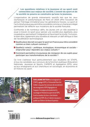Ce livre s’adresse tout particulièrement aux étudiants en STAPS, à tous les candidats aux concours de la fonction publique (Éducation Nationale, Jeunesse et Sports, CAPEPS et Agrégation EPS), ainsi qu’aux enseignants et aux chercheurs en sociologie, en économie et en histoire du sport.