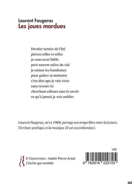 Pour le jeune poète Laurent Faugeras, le poème est écrit comme un fruit qui se mord les joues. Chaque poème est ici une topographie, une vigoureuse empoignade de pays et de mots, d’images, de rapports intimes, de chemins concordants.
