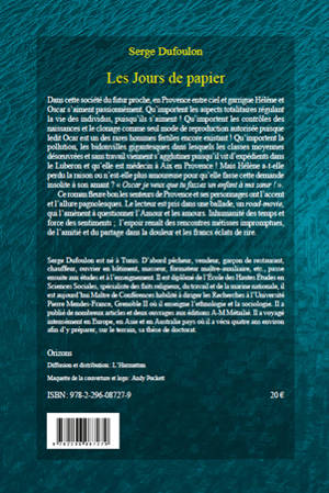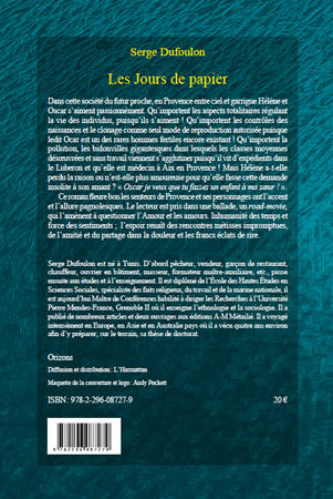 Dans cette société du futur proche, en Provence entre ciel et garrigue Hélène et Oscar s'aiment passionnément. Qu'importent les aspects totalitaires régulant la vie des individus, puisqu'ils s'aiment ! Ce roman fleure bon les senteurs de Provence et ses personnages ont l'accent et l'allure pagnolesque. Inhumanité des temps et force des sentiments ; l'espoir renaît des rencontres métisses impromptues, de l'amitié et du partage dans la douleur et les francs éclats de rire.