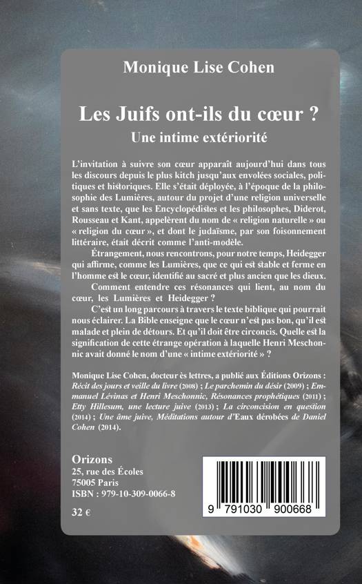 L'invitation à suivre son coeur s'était déployée, à l'époque de la philosophie des Lumières, autour du projet d'une religion universelle et sans texte, aussi appelée "religion du coeur", dont le judaïsme était décrit comme l'anti-modèle. Etrangement, Heidegger affirme, comme les Lumières, que ce qui est stable et ferme en l'homme est le coeur. Comment entendre ces résonances ? C'est un long parcours à travers le texte biblique qui pourrait nous éclairer. La Bible enseigne que le coeur n'est pas bon, qu'il est malade et plein de détours. Et qu'il doit être circoncis. Quelle est la signification de cette étrange opération à laquelle Meschonnic avait donné le nom d'une "intime extériorité" ?