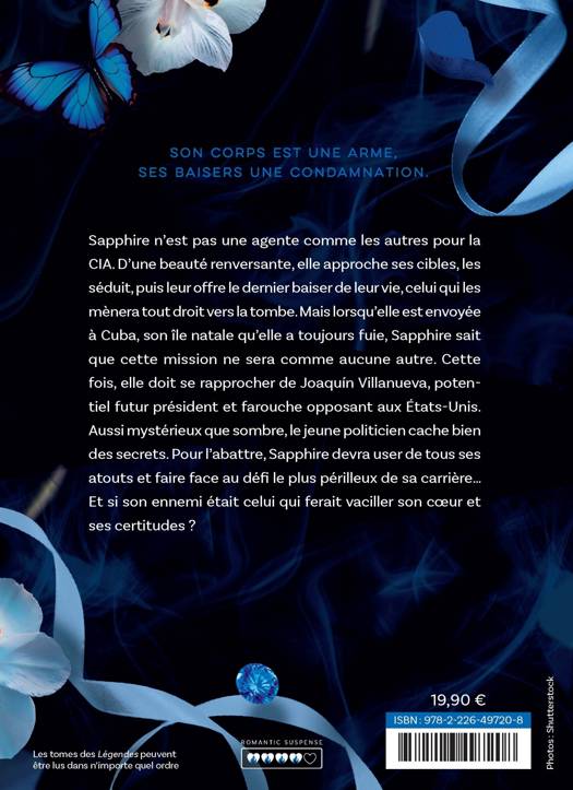 Sapphire n'est pas une agente comme les autres pour la CIA. D'une beauté renversante, elle approche ses cibles, les séduit, puis leur offre le dernier baiser de leur vie, celui qui les mènera tout droit vers la tombe. Mais lorsqu'elle est envoyée à Cuba, son île natale qu'elle a toujours fuie, Sapphire sait que cette mission ne sera comme aucune autre. Cette fois, elle doit se rapprocher de Joaquín Villanueva, potentiel futur président et farouche opposant aux États-Unis. Aussi mystérieux que sombre, le jeune politicien cache bien des secrets. Pour l'abattre, Sapphire devra user de tous ses atouts et faire face au défi le plus périlleux de sa carrière... Et si son ennemi était celui qui ferait vaciller son coeur et ses certitudes ?