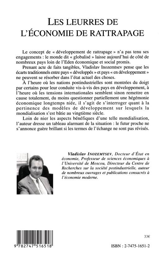 Le concept de " développement de rattrapage " n'a pas tenu ses engagements: le monde dit " globalisé " laisse de côté de nombreux pays loin de l'Eden économique et social promis. L'auteur montre que les écarts traditionnels entre pays " développés " et pays " en développement " ne peuvent se résorber dans l'état actuel des choses. Il analyse la situation dans quelques pays (Chine, Sud-Est asiatique, Russie,…) et pose la question de la pertinence des modèles de développement sur lesquels la mondialisation s'est bâtie au XXème siècle.