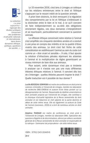 A priori distincts, le droit renvoyant à la régulation des comportements par la loi et l'éthique à la distinction entre bien et mal, ces deux domaines s'interpénètrent et se nourrissent, particulièrement sur la question animale. La réflexion sur l'éthique animale s'est amplifiée ces cinquante dernières années et a conduit à une prise en compte des intérêts et de la qualité d'êtres vivants des animaux. Le droit s'en est fait l'écho. Pour autant, cette dynamique n'est pas si évidente : quelles théories peuvent inspirer le droit ?