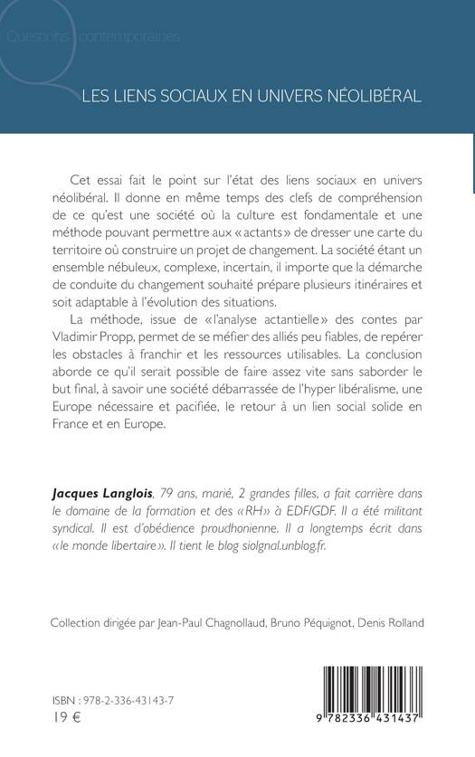 Cet essai fait le point sur l’état des liens sociaux en univers néolibéral. Il donne en même temps des clefs de compréhension de ce qu’est une société où la culture est fondamentale et une méthode pouvant permettre aux « actants » de dresser une carte du territoire où construire un projet de changement. La société étant un ensemble nébuleux, complexe, incertain, il importe que la démarche de conduite du changement souhaité prépare plusieurs itinéraires et soit adaptable à l’évolution des situations.