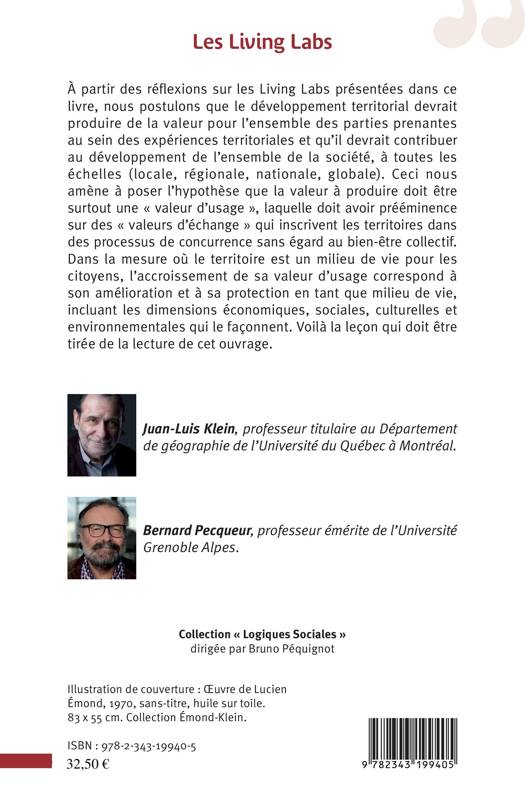 Un Living Lab est un laboratoire d'innovation ouverte. L'utilisateur est placé au centre du dispositif afin d'imaginer, développer et créer des services ou des outils innovants qui répondent aux espérances et nécessités de tout un chacun. À partir de leurs réflexions sur les Living Labs, les auteurs postulent que le développement territorial devrait produire de la valeur pour l’ensemble de la société. La valeur à produire devrait être surtout une valeur d’usage, plutôt qu'une valeur d’échange qui mettrait les territoires en concurrence au détriment du bien-être collectif. Dans la mesure où le territoire est un milieu de vie pour les citoyens, l’accroissement de sa valeur d’usage contribue à son amélioration et à sa protection.