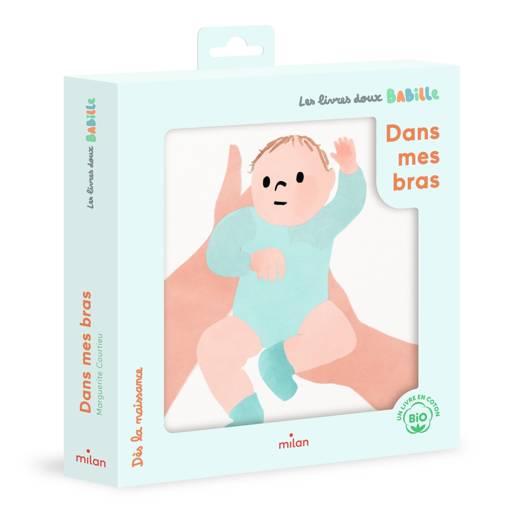 "Dans mes bras, tu rêves contre mon coeur, tu ris aux éclats,tu grandis en douceur." Ce livre tissu en coton bio, signé Marguerite Courtieu, raconte les tendres câlins que le bébé et son parent partagent au quotidien. Un adorable livre tissu, à lire avec bébé, blottis l'un contre l'autre. Une toute première rencontre avec la lecture Ce livre en tissu doux et moelleux se lit à deux, pour un moment de complicité entre le parent et le bébé. Mais bébé pourra également le parcourir en toute autonomie, en manipulant les pages pour s'éveiller. "Babille", la collection qui aide bébé et ses parents à se découvrir "Babille" est une gamme de livres à destination des bébés dès la naissance. Histoire, imagier, récit, livre tissu... cette collection comprend différents types de livres, aux formats variés, pour susciter des temps d'échange et d'émotion entre le parent et le bébé. La lecture devient un moment privilégié pour se découvrir et nourrir le lien d'attachement. « Nous avons eu un coup de coeur pour cette nouvelle collection Babille. Elle regorge d'idées pour initier les petits à la lecture. C'est une excellente idée de cadeau de naissance pour bébé et ses parents ! » ID Boox « Drôles, tendres, poétiques et colorés, en tissu ou cartonnés, les livres de cette collection sauront renforcer vos liens d'attachement avec bébé. » Picoti côté parents