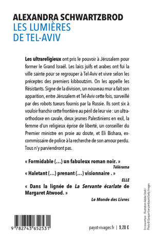 Alexandra Schwartzbrod est romancière, essayiste, spécialiste du Moyen Orient et directrice adjointe de la rédaction de «Libération». Elle a reçu le Prix SNCF du polar en 2003 pour «Balagan» et le Grand prix de littérature policière en 2010 pour «Adieu Jérusalem», deux romans qui composent, avec «Les Lumières de Tel-Aviv», un cycle consacré à Israël.