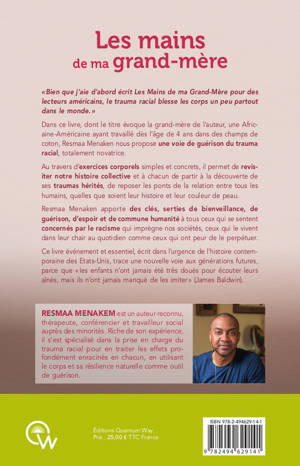 « Bien que j’aie d’abord écrit Les Mains de ma Grand-Mère pour des lecteurs américains, le trauma racial blesse les corps un peu partout dans le monde. » Dans ce livre, dont le titre évoque la grand-mère de l’auteur, une Africaine-Américaine ayant travaillé dès l’âge de 4 ans dans des champs de coton, Resmaa Menaken nous propose une voie de guérison du trauma racial, totalement novatrice. Au travers d’exercices corporels simples et concrets, il permet de revisiter notre histoire collective et à chacun de partir à la découverte de ses traumas hérités, de reposer les ponts de la relation entre tous les humains, quelles que soient leur histoire et leur couleur de peau. Resmaa Menaken apporte des clés, serties de bienveillance, de guérison, d’espoir et de commune humanité à tous ceux qui se sentent concernés par le racisme qui imprègne nos sociétés, ceux qui le vivent dans leur chair au quotidien comme ceux qui ont peur de le perpétuer. Ce livre événement et essentiel, écrit dans l’urgence de l’histoire contemporaine des Etats-Unis, trace une nouvelle voie aux générations futures, parce que « les enfants n’ont jamais été très doués pour écouter leurs aînés, mais ils n’ont jamais manqué de les imiter » (James Baldwin).