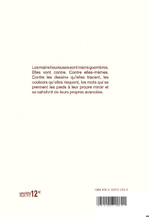 Véritable vision fragmentaire, et fragmentée, Les Mains heureuses bouscule nos représentations et propose d’observer le monde à travers un regard nouveau : celui des mains. Il répond à la question suivante : quelles sont les mains heureuses ? Le coeur du recueil, davantage naturaliste, offre de belles méditations sur les arbres, les ombres et les couleurs de la nature...<br /><br /> Mêlant à la fois réflexions philosophiques et expressions poétiques, ce recueil de poèmes, écrits en vers libres, mêle métonymies, aphorismes, notes éparses, cris du coeur et chants profonds.<br /> Cinq feuillets, intitulés successivement, Saisons qui portez tout, Bleu jusqu’au noir, L’heure de l’éclair, Le temps de Madame, Ciel déchiré bleu s’intercalent entre Mains heureuses I et Mains heureuses II qui forment les pierres angulaires de cet ouvrage. Le recueil est suivi d'un entretien avec le poète. <br />