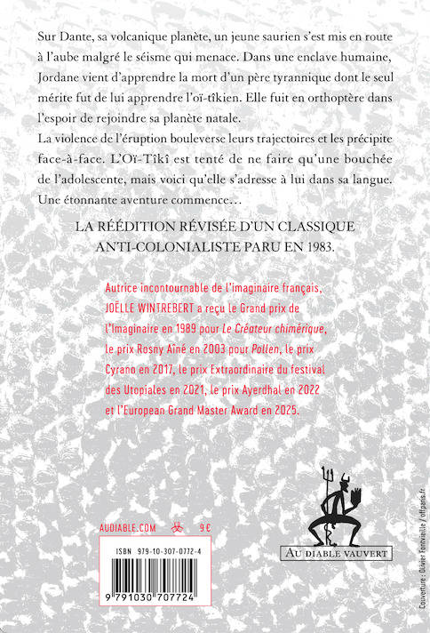 Sur Dante, sa volcanique planète, un jeune saurien s’est mis en route à l’aube malgré le séisme qui menace. Dans une enclave humaine, Jordane vient d’apprendre la mort d’un père tyrannique dont le seul mérite fut de lui apprendre l’oï-tîkien. Elle fuit en orthoptère dans l’espoir de rejoindre sa planète natale.