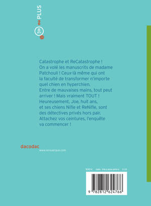 Joe a deux chiens, Nifle et ReNifle qui l'accompagnent dans toutes ses enquêtes. Jusqu'à présent, la jeune fille n'a jamais eu l'occasion de prouver ses talents d'enquêtrice, alors quand madame Patchouli (une vieille dame en maison de retraite) fait appel à elle, ni une ni deux Joe saute sur l'occasion ! Maintenant elle doit à tout prix retrouver les manuscrits volés de madame Patchouli. Mais ces manuscrits sont un peu particuliers... ils ont le pouvoir de transformer n'importe quel chien en hyperchien !