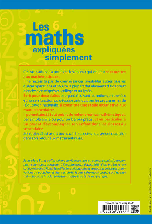 Il ne nécessite pas de connaissances préalables autres que les quatre opérations et couvre la plupart des éléments d’algèbre et d’analyse enseignés au collège et au lycée.
