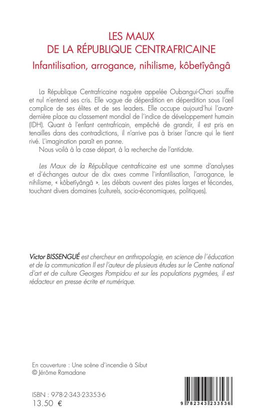 La République Centrafricaine occupe aujourd'hui l'avant-dernière place au classement mondial de l'indice de développement humain. Quant à l'enfant centrafricain, empêché de grandir, il est pris en tenailles dans des contradictions, il n'arrive pas à briser l'ancre qui le tient rivé. Cet ouvrage est une somme d'analyses et d'échanges autour de dix axes comme l'infantilisation, l'arrogance, le nihilisme, kôbetîyângâ . Les débats ouvrent des pistes larges et fécondes, touchant divers domaines (culturels, socio-économiques, politiques).