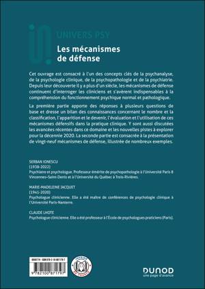 L’ouvrage est consacré à l’un des concepts clés de la psychanalyse, de la psychologie clinique, de la psychopathologie et de la psychiatrie. Un siècle après leur élaboration, les mécanismes de défense continuent d’interroger les cliniciens et s’avèrent indispensables à la compréhension du fonctionnement psychique normal et pathologique.