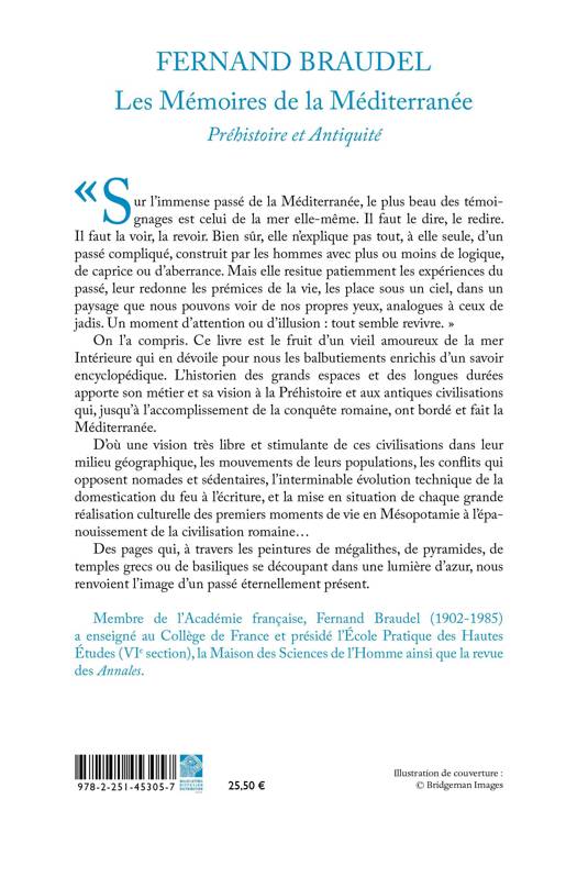 Sur l'immense passe de la Mediterranee, le plus beau des temoignages est celui de la mer elle-meme. Il faut le dire, le redire. Il faut la voir, la revoir. Bien sur, elle n'explique pas tout, a elle seule, d'un passe complique, construit par les hommes avec plus ou moins de logique, de caprice ou d'aberrance. Mais elle resitue patiemment les experiences du passe, leur redonne les premices de la vie, les place sous un ciel, dans un paysage que nous pouvons voir de nos propres yeux, analogues a ceux de jadis. Un moment d'attention ou d'illusion: tout semble revivre. On l'a compris. Ce livre est le fruit d'un vieil amoureux de la mer Interieure qui en devoile pour nous les balbutiements enrichis d'un savoir encyclopedique. L'historien des grands espaces et des longues durees apporte son metier et sa vision a la Prehistoire et aux antiques civilisations qui, jusqu'a l'accomplissement de la conquete romaine, ont borde et fait la Mediterranee. D'ou une vision tres libre et stimulante de ces civilisations dans leur milieu geographique, les mouvements de leurs populations, les conflits qui opposent nomades et sedentaires, l'interminable evolution technique de la domestication du feu a l'ecriture, et la mise en situation de chaque grande realisation culturelle des premiers moments de vie en Mesopotamie a l'epanouissement de la civilisation romaine... Des pages qui, a travers les peintures de megalithes, de pyramides, de temples grecs ou de basiliques se decoupant dans une lumiere d'azur, nous renvoient l'image d'un passe eternellement present.