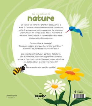 La nature est riche en découvertes. Si on croit connaitre beaucoup de choses, en vérité, il n'en est rien. Il y a toujours une multitude de secrets et de choses fascinantes à découvrir. Dans ce livre, tu trouveras la réponses à certaines questions comme : Qu'est-ce que le tonnerre ? Pourquoi certains animaux dorment-ils tout l'hiver ? Comment les plantes se nourrissent-elles ? Les enfants sont les futurs intendants de la Terre. Dès leur enfance, il est important qu'ils apprennent à apprécier et à prendre soin de la nature. Pourquoi ne pas introduire cette valeur avec ce livre instructif? Parce que la nature est incroyable !