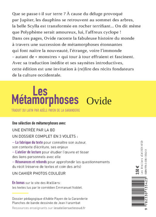 Dans ces pages, Ovide raconte la fabuleuse histoire du monde à travers une succession de métamorphoses étonnantes qui font naître la nouveauté, l'étrange, voire l'immonde - autant de « monstres » qui tour à tour effraient et fascinent.