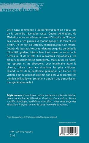 Cette saga commence à Saint-Pétersbourg en 1905, lors de la première révolution russe. Quatre générations de Mikhaïlov nous emmènent à travers l'Histoire de l'Europe, ses révoltes, ses guerres. À chaque époque, ils forcent leur destin. On les suit en Lettonie, en Belgique puis en France. Coupés de leurs racines, ces migrants en quête perpétuelle d'identité gardent intacte leur âme slave, le sens de la démesure et de la fête. Les rencontres improbables, les amours passionnées se succèdent... mais aussi les fuites, les ruptures et les abandons. Leur imaginaire attire la chance, même dans les situations les plus critiques. Quand un fils de la quatrième génération, en France, est victime d'un cauchemar répétitif, son père va rencontrer les derniers Mikhaïlov en Lettonie. Y aurait-il une transmission transgénérationnelle ?