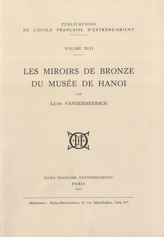 « La collection de miroirs de bronze du Musée Louis-Finot de Hanoi comprend 111 pièces, miroirs entiers ou fragments. A l’exception d’un fragment de miroir siamois et de trois miroirs japonais, cette collection est constituée par des pièces chinoises des différentes époques à partir de la dynastie des Han antérieurs. Elle s’est formée peu à peu par des apports de sources très variées : 1° Inventions opérées au cours de fouilles systématiquement conduites dans des sites du Viêt-Nam. Ceux de Dông-son, dans la province du Thanh-hóa, et de Nghi-vê, dans la province de Bac-ninh, ont été particulièrement importants pour les miroirs de bronze ; 2° Inventions réalisées accidentellement au cours de travaux de terrassement exécutés par des services privés ou publics sans intention archéologique ; 3° Achats réalisés en différents points du Viêt-Nam à des antiquaires ou à des particuliers détenteurs de miroirs ; 4° Appropriation de collections archéologiques rassemblées par des amateurs français qui les ont ensuite cédées à titre gratuit ou onéreux au Musée Louis-Finot. L’une de ces anciennes collections particulières les plus intéressantes est celle qui appartient à M. André d’Argence, comprenant, outre des miroirs, beaucoup d’autres pièces remarquables, de bronze ou de céramique ; 5° Envoi de l4étranger, surtout par des membres de l’École française en mission. Ainsi quelques miroirs ont été envoyés de Chine par Pelliot en 1911… »