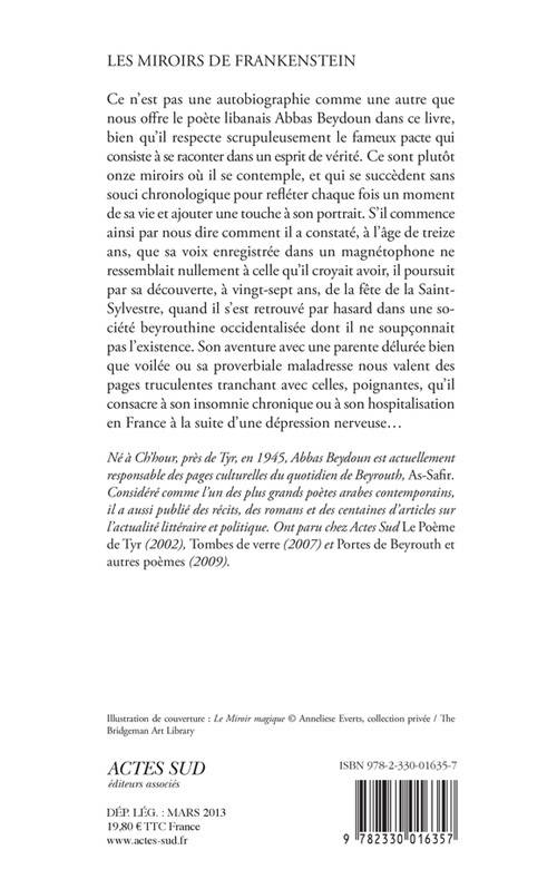 Ce n'est pas une autobiographie comme une autre que nous offre le poète libanais Abbas Beydoun dans ce livre, bien qu'il respecte scrupuleusement le fameux pacte qui consiste à se raconter dans un esprit de vérité. Ce sont plutôt onze miroirs où il se contemple, et qui se succèdent sans souci chronologique pour refléter chaque fois un moment de sa vie et ajouter une touche à son portrait. S'il commence ainsi par nous dire comment il a constaté, à l'âge de treize ans, que sa voix enregistrée dans un magnétophone ne ressemblait nullement à celle qu'il croyait avoir, il poursuit par sa découverte, à vingt-sept ans, de la fête de la Saint-Sylvestre, quand il s'est retrouvé par hasard dans une société beyrouthine occidentalisée dont il ne soupçonnait pas l'existence. Son aventure avec une parente délurée bien que voilée ou sa proverbiale maladresse nous valent des pages truculentes tranchant avec celles, poignantes, qu'il consacre à son insomnie chronique ou à son hospitalisation en France à la suite d'une dépression nerveuse...