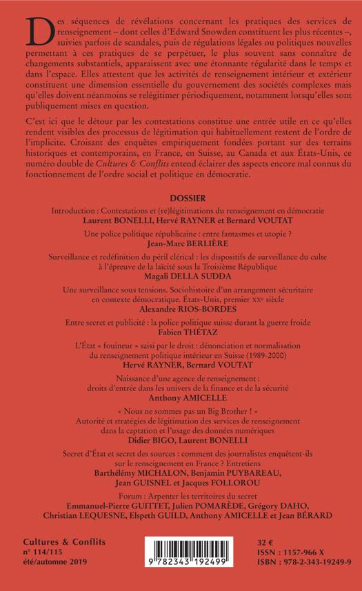 Des séquences de révélations concernant les pratiques des services de renseignement - dont celles d'Edward Snowden constituent les plus récentes, suivies parfois de scandales, puis de régulations légales ou politiques nouvelles permettant à ces pratiques de se perpétuer, le plus souvent sans connaître de changements substantiels, apparaissent avec une étonnante régularité dans le temps et dans l'espace. Elles attestent que les activités de renseignement intérieur et extérieur constituent une dimension essentielle du gouvernement des sociétés complexes mais qu'elles doivent néanmoins se relégitimer périodiquement, notamment lorsqu'elles sont publiquement mises en question.