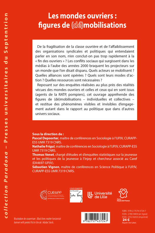 Reposant sur des enquêtes réalisées au plus près des réalités vécues des mondes ouvriers et celles et ceux qui en sont issus (agents de la RATP, pompiers), cet ouvrage appréhende des figures de (dé)mobilisations - individuelles et collectives - et restitue des phénomènes visibles et invisibles d'engagement autant dans le rapport au politique que dans d'autres univers sociaux.