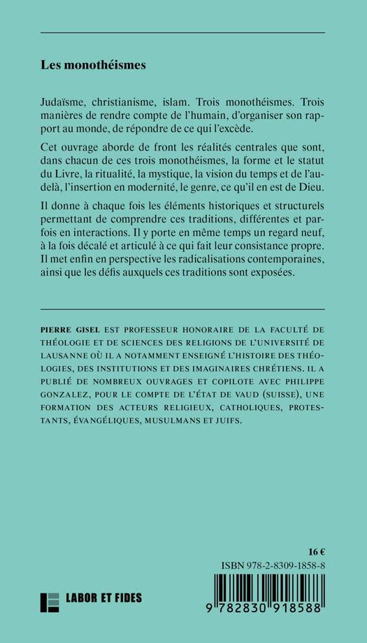 Judaïsme, christianisme, islam. Trois monothéismes. Trois manières de se référer à Dieu, de rendre compte de l’humain, d’organiser son rapport au monde et à la société. Cet ouvrage aborde de front les réalités centrales que sont la forme et le statut du Livre, la ritualité, la mystique, la vision de l’au-delà, l’articulation à la modernité, ce qu’il en est de Dieu, de l’humain et du monde dans chacun de ces trois monothéismes. Il donne à chaque fois les éléments historiques et structurels permettant de comprendre ces traditions. Il met aussi en perspective les phénomènes de radicalisation contemporaine.