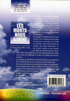 « Les morts nous aiment », oui, c'est vrai. Ils nous aiment, veillent sur nous et nous protègent. Ils essaient de nous le dire par tous les moyens : en multipliant les signes de leur présence autour de nous, en se manifestant à travers des médiums, en s'immisçant dans nos pensées, en nous prenant la main pour écrire, en gravant leurs pensées sur bandes magnétiques, en apparaissant sur des écrans de téléviseurs ou d'ordinateurs…