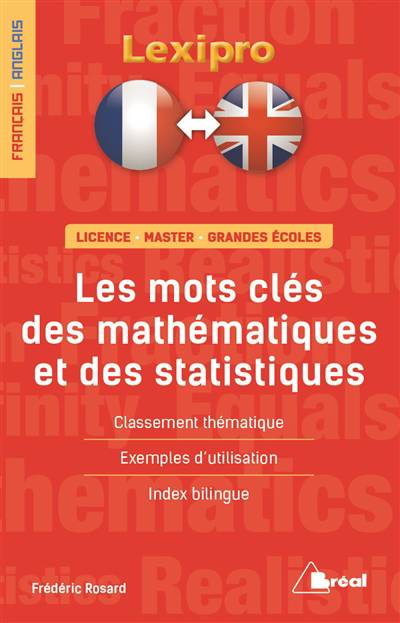 Une sélection de mots et d'expressions idiomatiques spécifiques aux mathématiques, accompagnés de leurs différentes traductions et de phrases les mettant en situation.