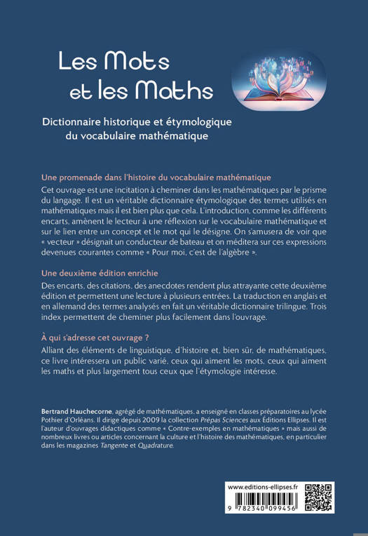 Alliant des éléments de linguistique, d’histoire et, bien sûr, de mathématiques, ce livre intéressera un public varié, ceux qui aiment les mots, ceux qui aiment les maths et plus largement tous ceux que l’étymologie intéresse.