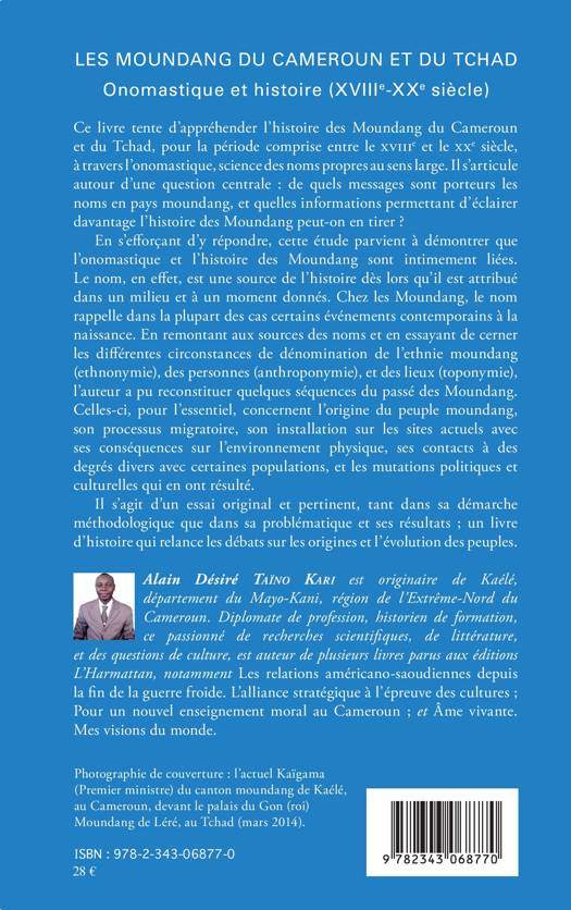 Ce livre tente d'appréhender l'histoire des Moundang du Cameroun et du Tchad, pour la période comprise entre le XVIIIe et le XXe siècle, à travers l'onomastique, science des noms propres au sens large. Il s'articule autour d'une question centrale : de quels messages sont porteurs les noms en pays moundang, et quelles informations permettant d'éclairer davantage l'histoire des Moundang peut-on en tirer ?