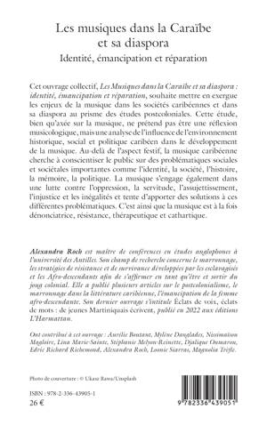 Cet ouvrage collectif, Les Musiques dans la Caraïbe et sa diaspora identité, émancipation et réparation, souhaite mettre en exergue les enjeux de la musique dans les sociétés caribéennes et dans sa diaspora au prisme des études postcoloniales. Cette étude, bien qu'axée sur la musique, ne prétend pas être une réflexion musicologique, mais une analyse de l'influence de l'environnement historique, social et politique caribéen dans le développement de la musique. Au-delà de l'aspect festif, la musique caribéenne cherche à conscientiser le public sur des problématiques sociales et sociétales importantes comme l'identité, la société, l'histoire, la mémoire, la politique. La musique s'engage également dans une lutte contre l'oppression, la servitude, l'assujettissement, l'injustice et les inégalités et tente d'apporter des solutions à ces différentes problématiques. C'est ainsi que la musique est à la fois dénonciatrice, résistance, thérapeutique et cathartique.