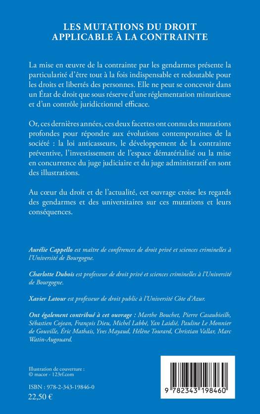 La mise en oeuvre de la contrainte par les gendarmes présente la particularité d'être tout à la fois indispensable et redoutable pour les droits et libertés des personnes. Elle ne peut se concevoir dans un État de droit que sous réserve d'une réglementation minutieuse et d'un contrôle juridictionnel efficace. Or, ces dernières années, ces deux facettes ont connu des mutations profondes pour répondre aux évolutions contemporaines de la société : la loi anticasseurs, le développement de la contrainte préventive, l'investissement de l'espace dématérialisé ou la mise en concurrence du juge judiciaire et du juge administratif en sont des illustrations. Au coeur du droit et de l'actualité, cet ouvrage croise les regards des gendarmes et des universitaires sur ces mutations et leurs conséquences.