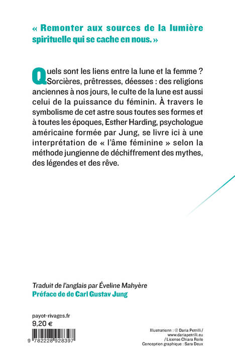Quels sont les liens entre la lune et la femme ? Que signifient-ils ? Peut-on en déduire les archétypes de la psychologie féminine ? À travers le symbolisme de la lune sous toutes ses formes et à toutes les époques, Esther Harding, psychologue américaine formée par Jung, se livre ici à une interprétation de « l'âme féminine » selon la méthode jungienne de déchiffrement des mythes, des légendes et des rêves.