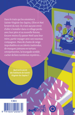 Dans le train qui les emmène à Sainte-Virginie-les-Sapins, Olive et Noé broient du noir. Ils n'ont aucune envie d'aller s'installer dans ce village perdu avec leur père et sa nouvelle femme. Encore moins d'y passer Noël sans leur mère, partie voyager avec son nouveau compagnon. Mais de chutes de neige improbables en accidents inattendus, de mangues juteuses en tortues omniprésentes, la bourgade semble cacher de bien nombreux mystères...