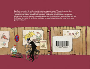 Que font nos nains de jardin quand nous ne regardons pas ? A première vue, rien. Et pourtant, hors de notre regard, leur vie est tout à fait trépidante ! Certains subissent les railleries des passants, les malices du dessinateur ou partent découvrir le monde. D'autres sont enlevés par des extraterrestres pour distraire leur roi. Bref, ce recueil de strips surréalistes, absurdes et hilarants vous démontrera que la vie des nains de jardin est tout sauf un long fleuve tranquille, pour notre plus grand bonheur !