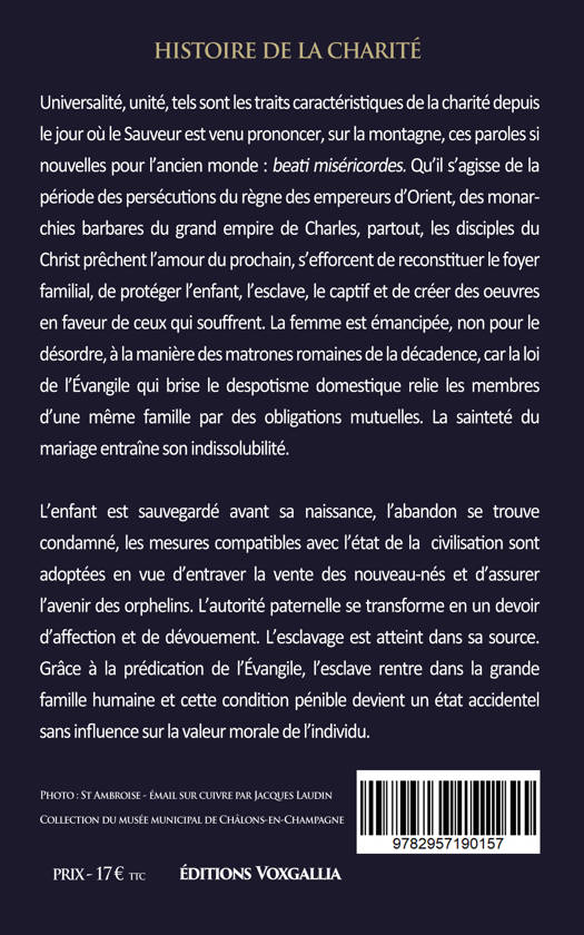 Qu'il s'agisse de la période des persécutions du règne des empereurs d'Orient, des monarchies barbares du grand empire de Charles, partout, les disciples du Christ prêchent l'amour du prochain, s'efforcent de reconstituer le foyer familial, de protéger l'enfant, l'esclave, le captif et de créer des oeuvres en faveur de ceux qui souffrent. La femme est émancipée, non pour le désordre, à la manière des matrones romaines de la décadence, car la loi de l'Évangile qui brise le despotisme domestique relie les membres d'une même famille par des obligations mutuelles. La sainteté du mariage entraîne son indissolubilité. L'enfant est sauvegardé avant sa naissance, l'abandon se trouve condamné, les mesures compatibles avec l'état de la civilisation sont adoptées en vue d'entraver la vente des nouveau-nés et d'assurer l'avenir des orphelins. L'autorité paternelle se transforme en un devoir d'affection et de dévouement. L'esclavage est atteint dans sa source.