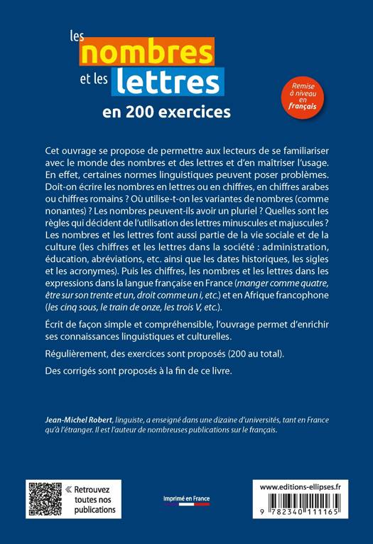 Cet ouvrage se propose de permettre aux lecteurs de se familiariser avec le monde des chiffres et des lettres et d’en maîtriser l’usage. En effet, certaines normes linguistiques peuvent poser problèmes. Doit-on écrire les nombres en lettres ou en chiffres, en chiffres arabes ou chiffres romains ? Où utilise-t-on les variantes de nombres (comme nonantes) ? Les nombres peuvent-ils avoir un pluriel ? Quelles sont les règles qui décident de l’utilisation des lettres minuscules et majuscules ? Les chiffres et les lettres font aussi partie de la vie sociale et de la culture (les chiffres et les lettres dans la société : administration, éducation, abréviations, etc. ainsi que les dates historiques, les sigles et les acronymes). Puis les chiffres, les nombres et les lettres dans les expressions dans la langue française en France (manger comme quatre, être sur son trente et un, droit comme un i, etc.) et en Afrique francophone (les cinq sous, le train de onze, les trois V, etc.).