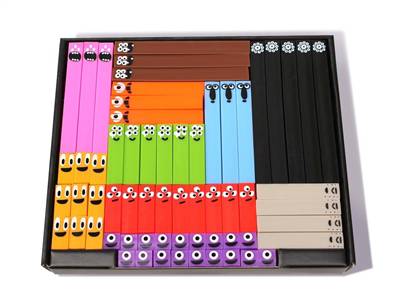 Une boite de 126 réglettes à manipuler (présentée ici).
