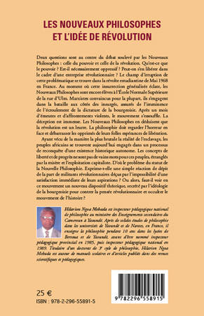 Deux questions sont au centre du débat soulevé par les Nouveaux Philosophes : celle du pouvoir et celle de la révolution. Si la charge révolutionnaire de la Nouvelle Philosophie peut inspirer le peuple africain dont la domination est aujourd'hui subtilement maquillée par l'idéologie de l'indépendance, il y a lieu de se demander si la Nouvelle Philosophie n'est pas une nouvelle idéologie qui prône simplement une "morale de résistance" ou une "éthique de la soumission" à l'ordre capitaliste.Š