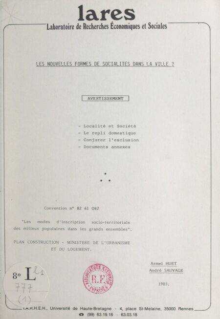 Les nouvelles formes de socialités dans la ville ? E-BOOK