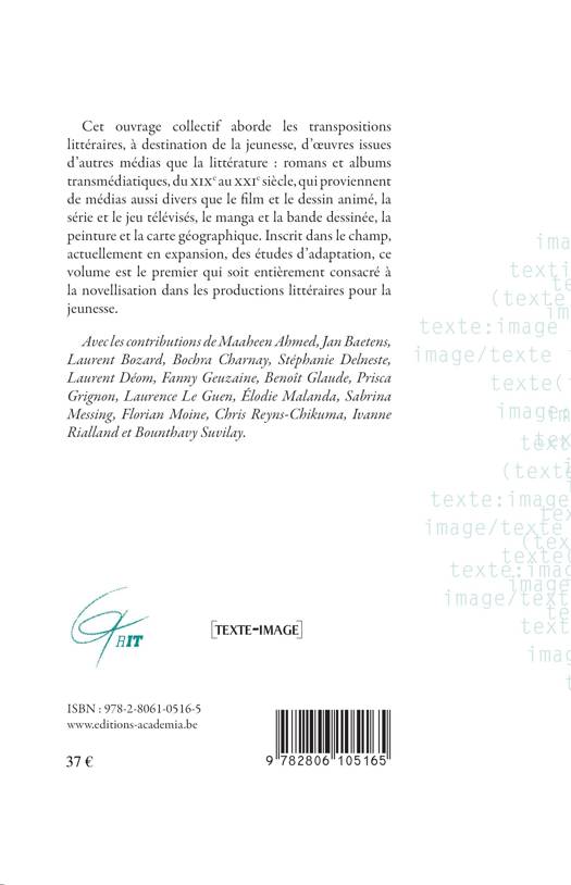 Cet ouvrage collectif aborde les transpositions littéraires, à destination de la jeunesse, d'oeuvres issues d'autres médias que la littérature : romans et albums transmédiatiques, du xix au xxie siècle, qui proviennent de médias aussi divers que le film et le dessin animé, la série et le jeu télévisés, le manga et la bande dessinée, la peinture et la carte géographique.