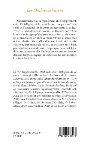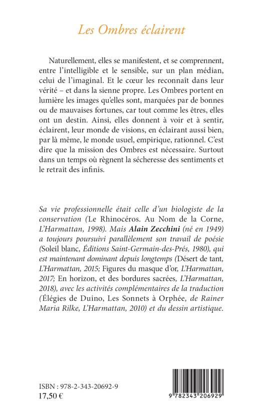 Naturellement, elles se manifestent et se comprennent, entre l'intelligible et le sensible, sur un plan médian, celui de l'imaginal. Les Ombres portent en lumière les images qu'elles sont, marquées par de bonnes ou de mauvaises fortunes, car tout comme les êtres, elles ont un destin. Ainsi, elles donnent à voir et à sentir, éclairent, leur monde de visions, en éclairant aussi bien, par là même, le monde usuel, empirique, rationnel. C'est dire que la mission des Ombres est nécessaire. Surtout dans un temps où règnent la sécheresse des sentiments et le retrait des infinis.