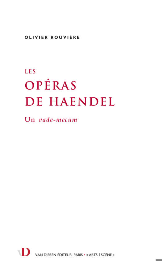 La bibliographie haendelienne est assez fournie, certes moins en français qu’en anglais ou allemand et les guides de l’opéra ne manquent pas. Ce volume ne s’attache qu’à la production scénique en langue italienne du Saxon, soit 40 opéras. Ils sont présentés par ordre chronologique et regroupés en 8 périodes – faisant chacune l’objet d’une présentation pour en faciliter la contextualisation. L’auteur propose une fiche dramaturgique et musicologique (assortie des lieux, date et distribution la création), ainsi qu’un bref résumé de l’intrigue pour chacun des opéras traités. Il offre ainsi un véritable vademecum des opéras de Haendel qui sera bien utile aux amateurs.